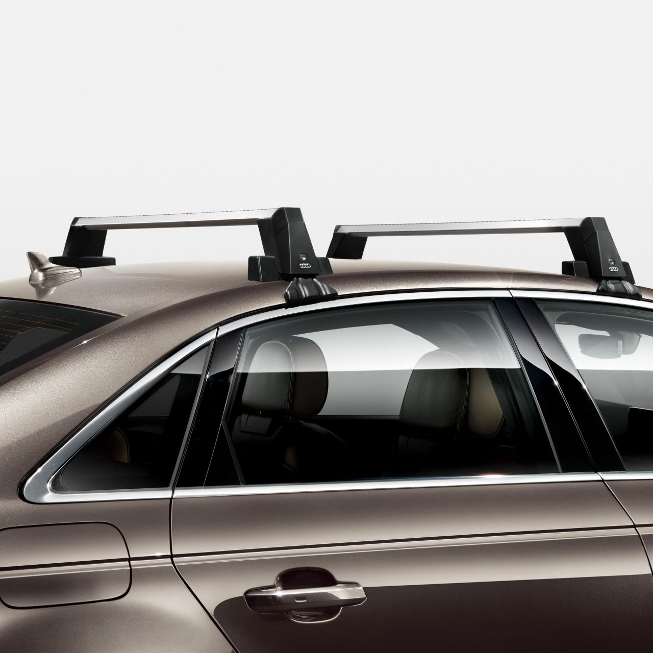 Bagażniki dachowe z eloksalowanego, ukształtowanego aerodynamicznie profilu aluminiowego służą za podstawę dla mnóstwa możliwości transportu. Montaż systemów dachowych jak bagażniki rowerowe, uchwyty na narty i snowboard i uchwyty kajakowe przebiega szybko i łatwo. Stopy, zaślepki i obudowy wykonane są ze stabilnego tworzywa sztucznego a solidny mechanizm z cynkowanej i powlekanej blachy stalowej. Bagażniki dachowe wyposażone są w zamknięcie zabezpieczające przed kradzieżą. Testowane w Audi City Crash.