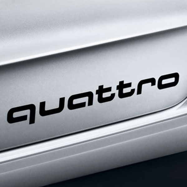 Dekoracyjne zestawy folii z napisem quattro w kolorze czarnym brilant dla tylnej części samochodu, po obydwu stronach zapewniają wyraziste kontrasty kolorów
