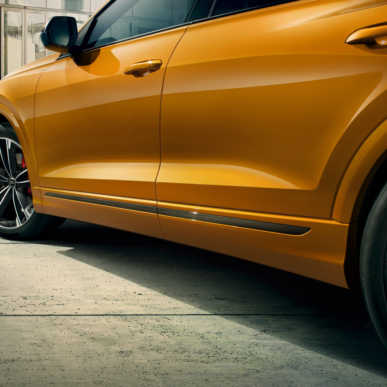 Listwy ozdobne wykonane są z karbonu. Dzięki temu boczna sylwetka pojazdu przyciąga wzrok. Karbon lub CFK (tworzywo sztuczne wzmacniane włóknem węglowym) pochodzi pierwotnie ze sportów motorowych. W pojazdach seryjnych ten materiał high-tech oznacza ekskluzywność i indywidualność. Ponadto wyraźnie podkreśla progresywny charakter samochodu. Dzięki listwom ozdobnym z karbonu wyjątkowe wzornictwo staje się jeszcze wyraźniej widoczne.