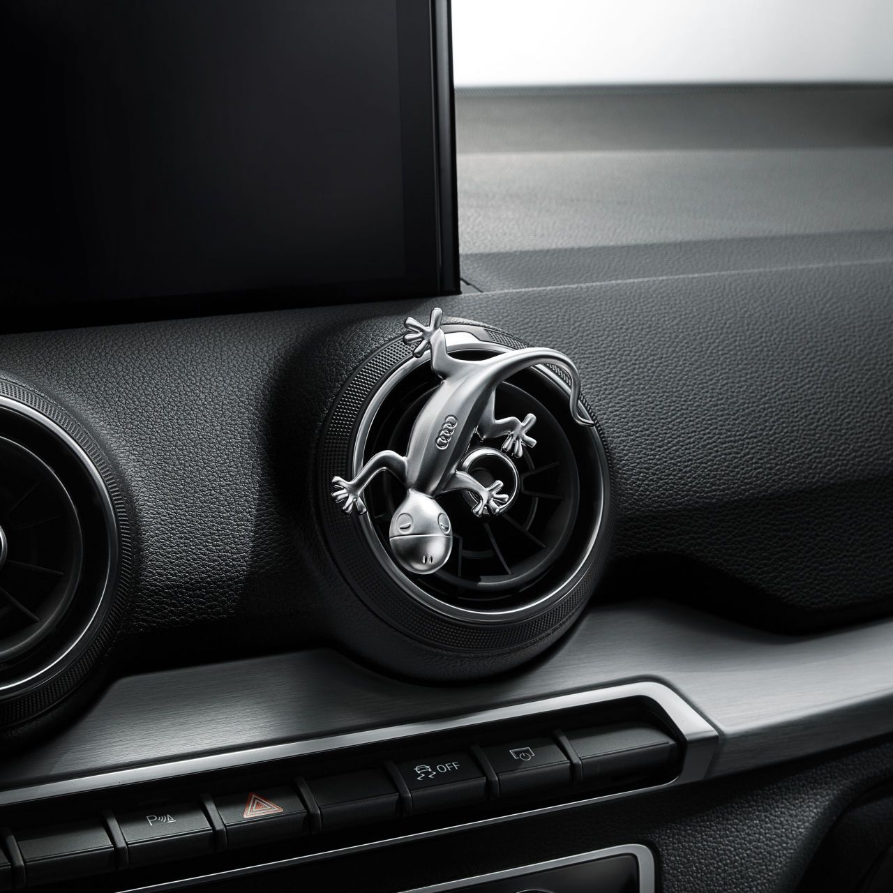 Stylowy gekon wykonany z materiału wysokiej jakości o wyglądzie aluminium jest atrakcyjnym elementem przyciągającym wzrok we wnętrzu samochodu lub na każdej innej metalowej powierzchni. Gekon jest symbolem ciągłego napędu na cztery koła quattro. Ta stylowa figurka może zostać umieszczona np. w kratkach nawiewu. Dzięki wbudowanym magnesom po zdjęciu zaczepu mocującego możliwe jest również zamocowanie na odpowiedniej, metalowej powierzchni.