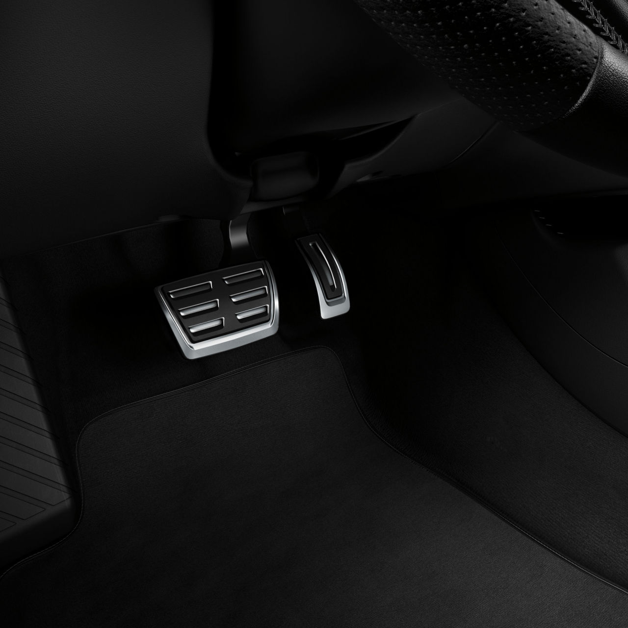 Nakładki na pedały ze stali nierdzewnej wysokiej jakości do samochodów z S tronic. Połączenie szczotkowanej stali nierdzewnej i antypoślizgowej gumy stanowi perfekcyjną mieszankę stylu i bezpieczeństwa.