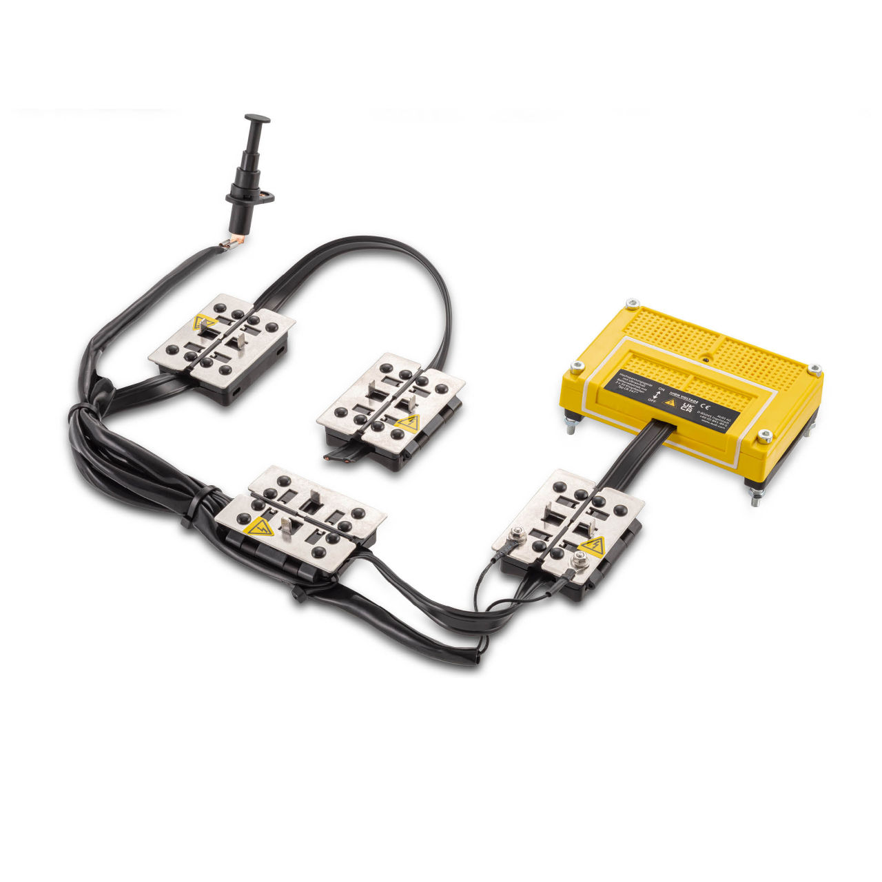 Zasilane akumulatorowo urządzenie wysokonapięciowe z dwubiegunowymi płytkami stykowymi ze stali szlachetnej nie wymaga elektrycznego połączenia z samochodem i wytwarza przy tym ultradźwięki.