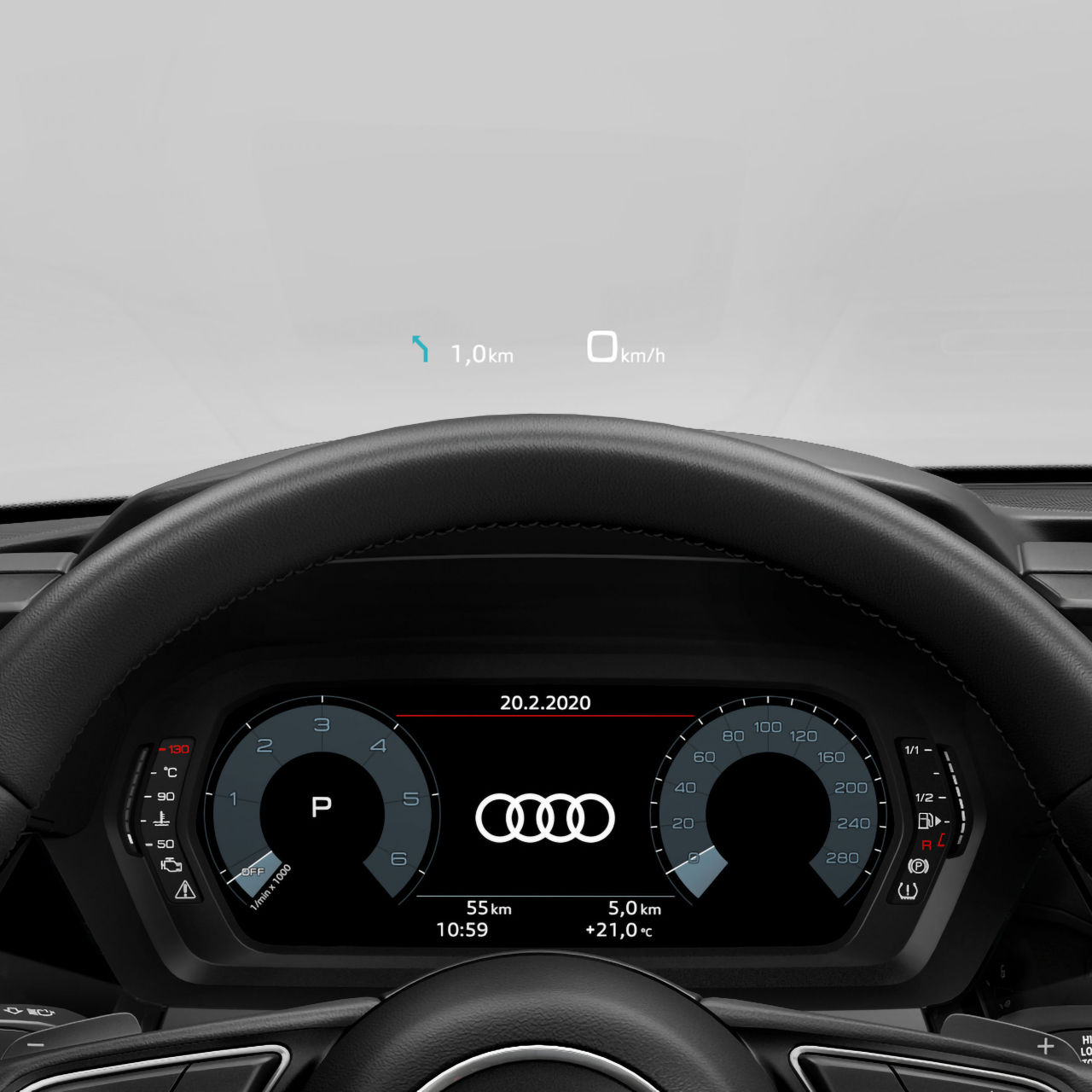 Wyświetlacz Head-up z asortymentu oryginalnych akcesoriów Audi jest sprytnym sposobem na doposażenie wspierającym kierowcę, dzięki lepszej widoczności informacji i wskazówek. Kolorowy i kontrastowy wyświetlacz Head-up wyświetla ważne informacje w bezpośrednim polu widzenia kierowcy na przezroczystym ekranie OLED. Świetnie widoczny dla kierowcy. Na życzenie wyświetlane mogą być prędkość, dalsze informacje istotne dla kierowcy z opcjonalnie dostępnego wyposażenia jak systemy asystentów i nawigacja oraz ostrzeżenia.